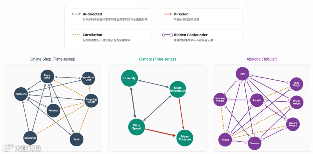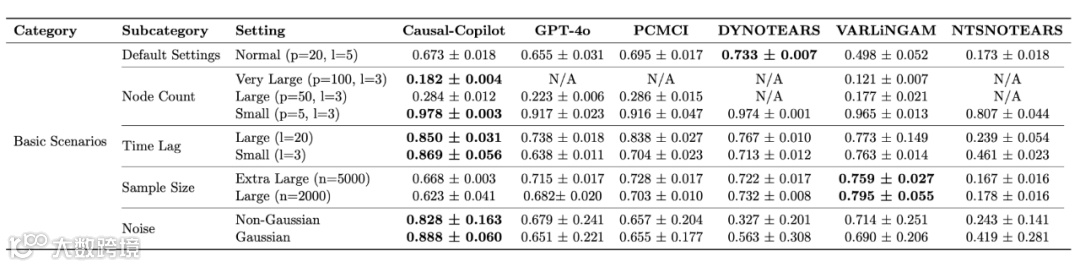 研究团队在多维度场景中对 Causal-Copilot 进行了严格评估。在表格数据测试中,系统覆盖基本场景、数据质量挑战(如异质域、测量误差、缺失值)和复合场景(临床、金融、社交网络数据),即使在包含 1000 个节点的大规模网络中,仍能保持优异的因果发现和推断性能。时间序列数据评估显示,针对地震、气候等时序数据集,系统能有效捕捉变量间的动态因果关系,例如识别前震活动对主震发生的影响路径。与以 GPT-4o 直接调用因果算法为基线的方法相比,Causal-Copilot 在 CSuite 基准测试和真实数据集上均表现出显著优势,其模块化架构和智能算法选择策略,成功克服了单一模型的局限性。