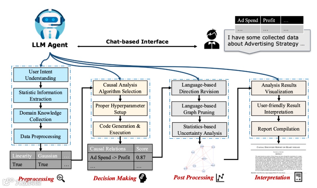 在生命科学、社会科学等众多领域,因果关系的探索始终是科学发现的关键环节。试想一位生物学家面对海量基因表达数据,直觉感知某些基因间存在调控关系,却因不熟悉 PC、GES 等因果发现算法而难以验证;或是社会学家评估教育政策对学生成绩的影响时,明知简单对比受混杂因素干扰,却在双重差分、倾向得分匹配等方法的复杂假设条件前举步维艰。这些场景真实反映了因果分析的现状:理论工具的进步与实际应用的鸿沟日益扩大,专业门槛将大量潜在用户挡在门外。