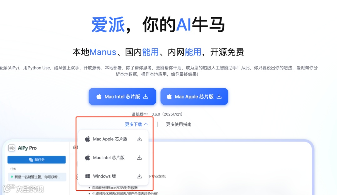 AiPy 的本地部署架构是其核心竞争力,直击 Manus 等云端方案的致命短板:零数据上云,隐私完全可控使得所有任务编码仅在本地生成,原始文件、敏感表格、IoT 设备日志等均在用户私有环境处理,杜绝云端传输泄露风险,尤其适合处理企业财务报告、医疗数据或家庭监控等高敏场景;超大文件与复杂任务高效本地处理规避网络带宽限制,直接调用本地算力解析 GB 级日志、构建百万行数据集模型,速度远超 API 中转云端方案,同时兼容 Windows/macOS/Linux 多平台,无缝集成现有工作流;开源透明可审计,代码完全开源(GitHub 仓库活跃度高),用户可检视任务生成逻辑,定制化安全策略(如限制系统命令调用范围),彻底告别黑箱操作带来的信任危机。这种将 AI 能力锚定本地设备的设计,让 AiPy 成为合规敏感型用户(如政企、金融、科研)的刚需工具,完美填补 Manus 离场留下的本地化 Agent 空白。