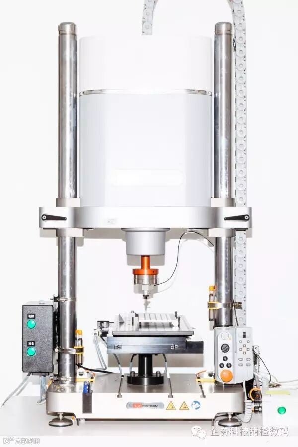 我们进到了一个相对僻静的地方,Bergeron 介绍这是“特性实验室”之一。这个实验室里有很多新奇的器械,大部分是苹果自制用于测试器材的。这里的很多器械都会使用机器人来有系统的进行鼠标的点击、轻敲和滑动等,以测试性能和耐用性,然后再使用复杂的软件来分析这些测试结果。“每一款新产品都需要它专属的测试,”她说。“我们需要设计固定装置这样我们才能测试产品。小组完成大量的工作,尝试以最快的速度来确定不同设计的特性。”