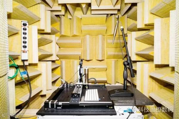 在音频室苹果会测试产品发出的响声。“想要有触摸准确,那需要适合的声音,”Ternus 说。这里有一个超大的消音室,这是苹果声音微定位系统中最重要的组成部分。新 Magic Keyboard 测试经常用到它。“因为它和现役的产品有结构差异,所以这款键盘需要非常严密的监测,我们需要把更多注意力放在它身上,确保质量,”Bergeron 说。“有一次测试它发出的声音我们不喜欢,所以我们又换了一种材料,确保用户也会喜欢它发出的声音。”