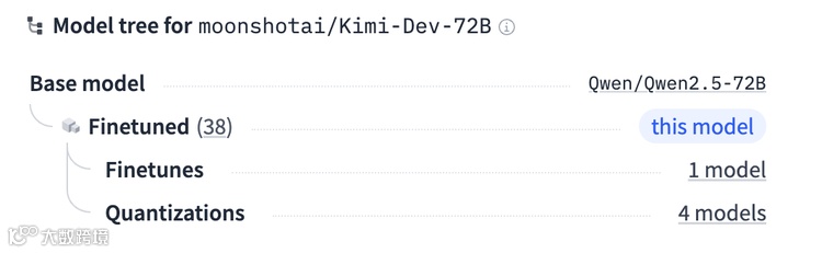 Kimi-Dev-72B 并非从零开始构建的全新模型。根据月之暗面在 Hugging Face 上的说明,该模型明确标注了 “Base model: Qwen/Qwen2.5-72B”。官方博客也提到,是以 Qwen 2.5-72B 基础模型为起点,收集了数百万个 GitHub 问题单和 PR 提交作为中期训练数据集进行开发的。这清晰地表明,Kimi-Dev 是基于阿里巴巴 Qwen 团队的 72B 参数模型进行二次开发的产物。
