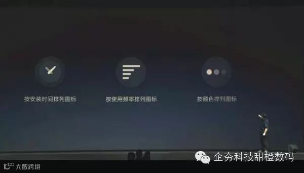 由于锤子OS 2.0采用特别的九宫格显示,因此图标排列显得很重要。锤子OS 2.0提供按安装时间、使用频率、色彩等排列图标。