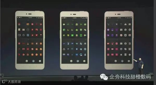 其中色彩排列非常有趣,并不是工程师的强迫症,而锤子研究过同一颜色排列的物品更容易寻找,比如你找一个红色图标,在划屏的时候看见其他颜色就可以直接划过去了,而直接去到红色那块寻找。
