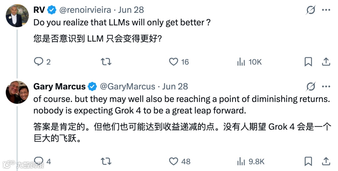 总的来说,这篇论文引发的讨论不仅仅关乎大语言模型本身,更涉及到人工智能未来的发展方向。虽然目前大语言模型展现出了巨大的潜力,但要实现通用人工智能这一宏伟目标,我们仍需面对诸多挑战,不断探索和创新。或许正如 Gary Marcus 所暗示的,我们需要重新审视和思考当前的技术路径,寻找更有效的方法来突破现有的局限,让人工智能真正走向通用、智能的未来。 我们期待看到更多的研究和实践,能够为解决这些问题提供新的思路和方案,推动人工智能技术迈向更高的台阶。