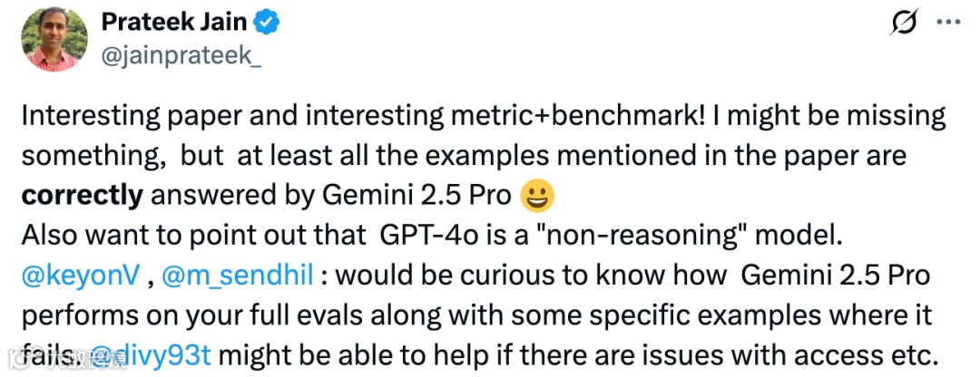 Gary Marcus 在转推中直言,对于 LLM 及其所谓能理解和推理的神话来说,情况变得更糟了。他认为该研究揭示的问题宣告了任何试图在纯粹 LLM 基础上构建 AGI 希望的终结,甚至还 @了 Geoffrey Hinton,称后者要失败。这一言论在评论区引发了轩然大波。有人询问他是否认可 LLM 越来越好,他虽持肯定态度,但也指出它们有可能来到了收益递减的点。还有人认为,我们不需要 LLM 理解,只要表现好就行,毕竟人类也并非总是能理解。谷歌 DeepMind 资深科学家 Prateek Jain 也现身评论区,表示论文及其评估方法和基准测试很有意思,并通过 Gemini 2.5 Pro 对论文中的例子进行测试,结果都答对了,他好奇该模型在完整测试集上的表现以及出错的具体例子。也有人质疑论文只是描述了 LLM 一种已知的实效模式,不明白为何得出 “注定失败” 的结论。那么,这篇论文究竟有何惊人发现呢?