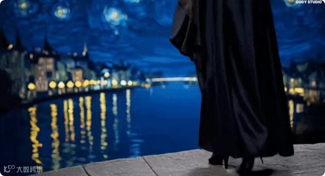 在创作《星夜》时,梵高正身处法国圣保罗德莫索勒精神病院。在朝东的窗户前,他被眼前那片壮美的星空深深震撼,夜空中旋转的星光,恰似他内心汹涌澎湃的情感。于是,他将这份激情与感动倾注于画笔之下,成就了这幅传世名作。他渴望与更多人分享这份美好,便向蒙娜丽莎发出邀请,希望将她置于这片璀璨的星空之下,这才有了视频中那艺术史上的绝美瞬间。