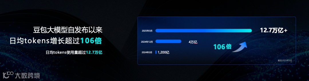市场反馈印证了豆包技术的认可度:截至2025年3月,其日均tokens调用量已达12.7万亿,较发布初期增长106倍,稳居国内公有云大模型调用量首位(IDC数据显示2024年市场份额46.4%)。这种增长不仅源于模型性能的领先,更得益于「技术+场景」的深度耦合——从面向消费者的智能助手到服务企业的智能制造解决方案,豆包已形成覆盖多行业的落地矩阵,切实解决了传统AI「效果差、成本高、落地难」的痛点。