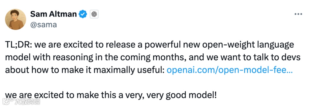 随着模型发布日期临近,行业内的猜想持续升温:该模型是否为GPT-5的简化版?开放权重是否会引发“AI军备竞赛”?奥特曼是否在为竞选美国总统积累科技声望?无论答案如何,这次开源行动都标志着AI发展进入新纪元。当模型参数不再是商业机密,当开发者获得更大的创新自由,我们或将见证人类历史上最具颠覆性的技术革命。正如奥特曼在推文中所言:“真正的AI进步,需要整个星球的智慧共同推动。”这场开源盛宴,才刚刚开场。