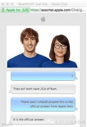 为了解答果粉们心中的“内存谜团”,有编辑专门到苹果公司的美国官网上咨询苹果客服人员,并得到了明确答复。客服人员表示“They will both have 2GB of Ram”(iPhone 6s与iPhone 6s Plus均采用了2GB的运存),所以从此得知这两款新iPhone配置的并非是1GB RAM而是更强劲的2GB RAM。