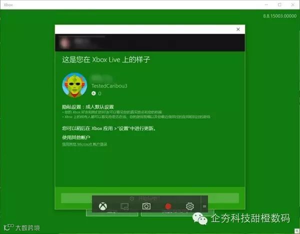 如果要使用 Xbox 的 Game DVR 的录制功能,我们只需打开 Xbox 应用再按 Windows + G 即可打开录制工具栏。当然也可以在打开 Xobx 应用的同时按下 Windows + Alt + R 进行直接录制。
