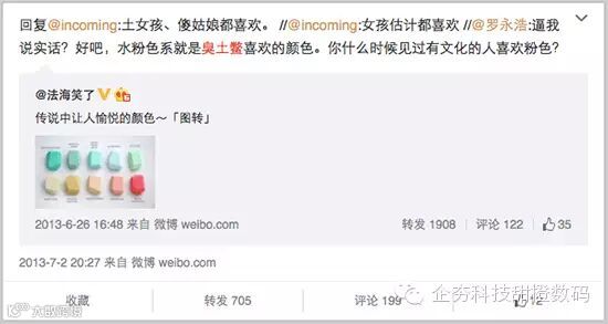 罗老师曾在微博表示“水粉色系就是臭土鳖喜欢的颜色,你什么时候见过有文化的人喜欢粉色”。当然,土鳖并非绝对意义上的贬义词,在罗老师曾经呆过的新东方,它只是“海龟”这个词的反义词而已。