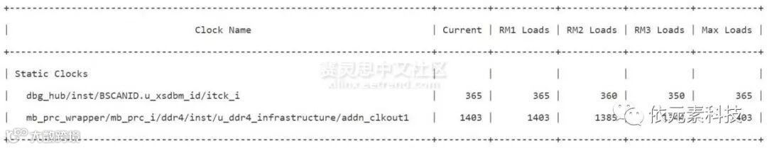 -clocking操作总结的是整个设计中用到的时钟资源,然后将时钟分布到每个可重配置模块中,同时它还提供了每个时钟区域中RM时钟负载的数量(下面表格未显示)。