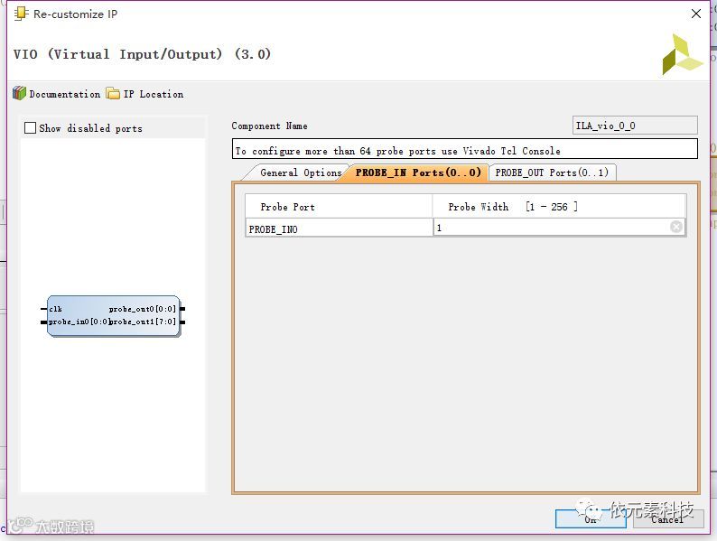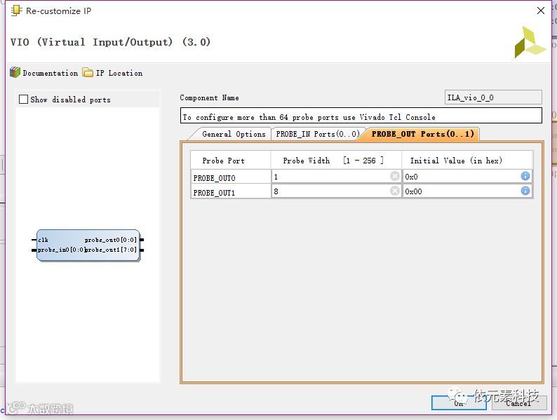 probe out port:参数配置输出探针的数据位宽,及初始化数据(in hex)