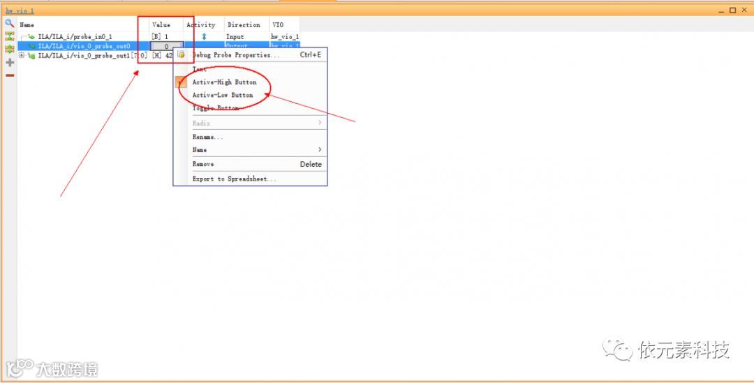 在hw_vio界面加入配置的输入及输出探针,并且对应的参数可以设置.