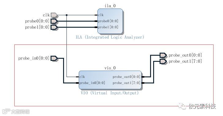 一般情况下ILA和VIO都是用在chipscope上使用,VIO可以作为在chipscope时模拟IO。