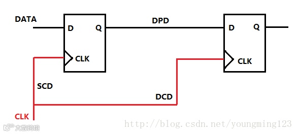 目的时钟延时(DCD):时钟信号线到目的定时元件的延时;