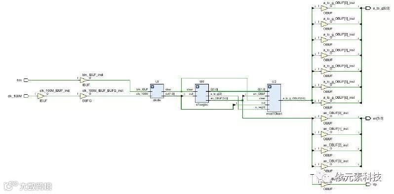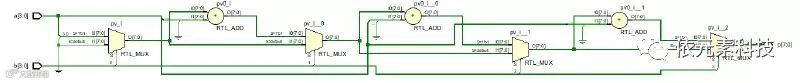 在完成Vivado FPGA综合流程后,我们还可以看到这段电路综合后的原理图。