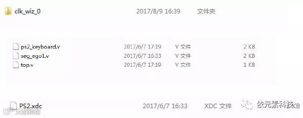 本实验代码包括三个verilog文件,top.v为顶层文件,ps2_keyboard.v和seg_ego1.v为底层文件,PS2.xdc为本实验的管脚约束文件,以及一个时钟分频的IP核。