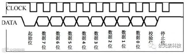 如下图所示,通信时先发送起始位,起始位总是为逻辑0。然后是8位数据,数据低位在前,高位在后。接着是校验位,如果数据位中1的个数为偶数,校验位就为1,;如果数据位中1的个数为奇数,校验位就为0。总之,数据位中1的个数加上校验位中1的个数总是奇数,因此进行的是奇校验。