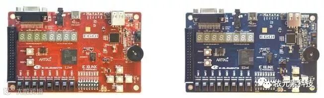 EGO1有红、蓝两色可选,红和蓝在色彩学上被称为互补色,红色代表着热情和勇气,蓝色代表稳定与信任,它们搭配在一起的时候显得对比强烈且醒目。我们希望通过颜色体现新工科建设下新型工程师的特色,同时亦表达了我们对Xilinx与FPGA的热爱。
