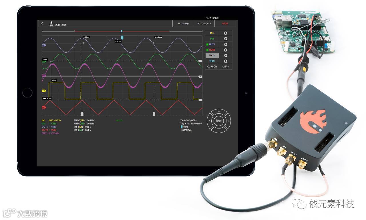 示波器应用将您的火龙果实现成2通道示波器和2通道信号发生器。它可以生成和测量高达50MHz的电信号。简单直观的用户界面为信号分析和测量提供了所有必要的工具。高端规格将满足更苛刻的用户寻找工作台的强大工具。该应用程序是基于Web的,不需要安装任何本机软件。