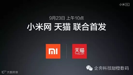发售时间方面,小米4c将于9月23日(明天)早上10点在小米官网和天猫同步联合首发。据悉这次的备货量也是十分充足,届时应该会像红米Note2一样有大量现货供应,想入手的米粉们可不要错过了。