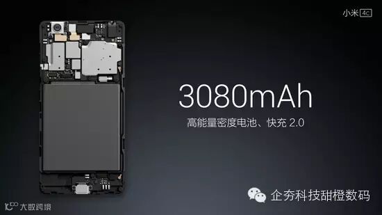 电池方面,小米4c配备了3080mAh(4.4V高电压)电池,支持快充2.0,采用了USB Type-C接口,正反都能插,也成为了首款采用USB Type-C接口的小米手机。