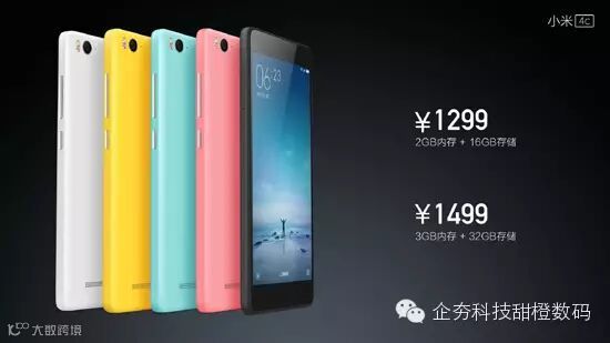 至于价格嘛,也并不是今天早上网上所曝光的1999元。小米4c真正的售价为:标准版1299元(2GB RAM+16GB ROM),高配版1499元(3GB RAM+32GB ROM),依然主打配置发烧极具性价比路线。将有白色、金属灰、桃粉色、柠檬黄、和湖蓝色五种颜色供选。
