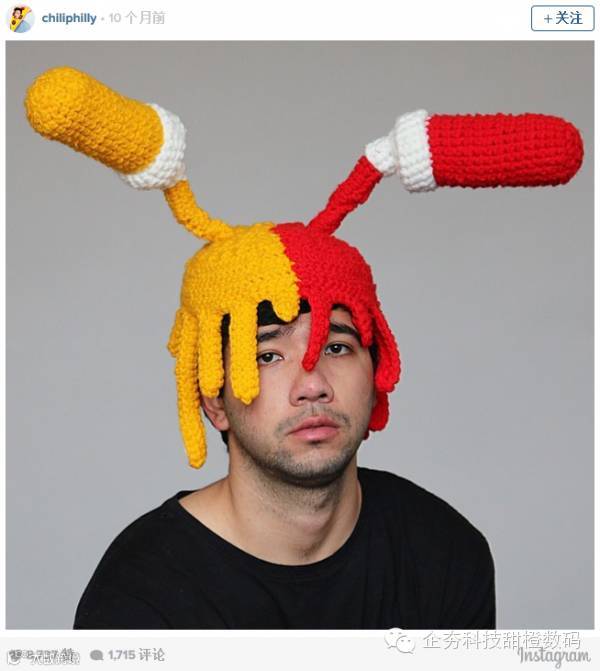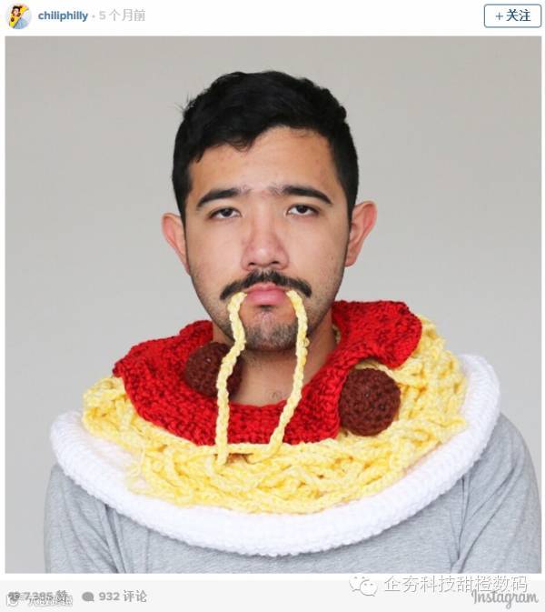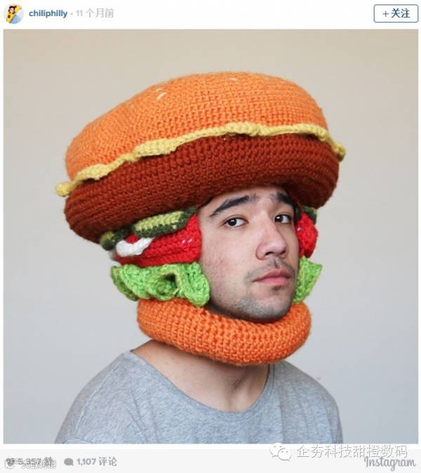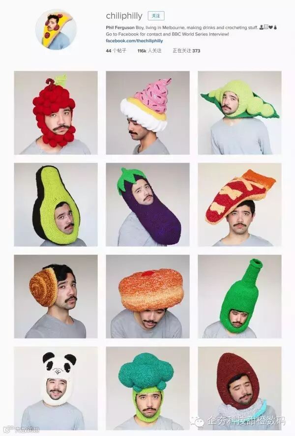 要说emoji“统治”了全世界一点也不为过。看看来自澳大利亚的Phil Ferguson就知道了,他都打算让自己变成emoji了。这位男子用毛线编织出各种各样的emoji食物表情,然后把它们戴在头上。这组特别的emoji表情秀让他在Instagram上迅速走红,现在,他已经拥有116,000为粉丝。