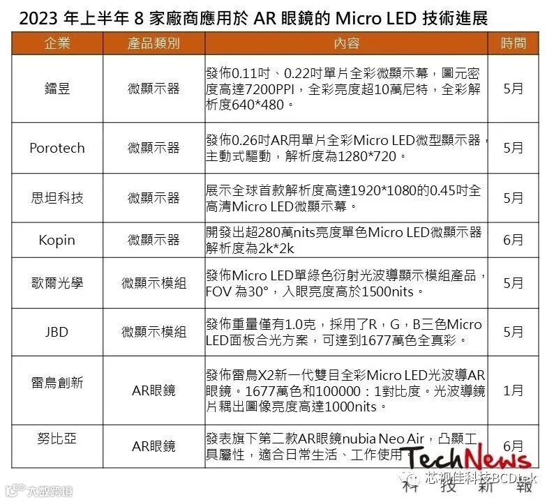 MicroLED | AR与手表将是Micro LED商业化发展方向