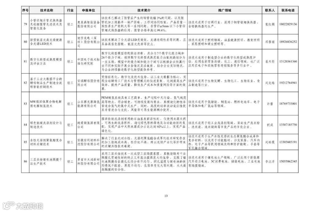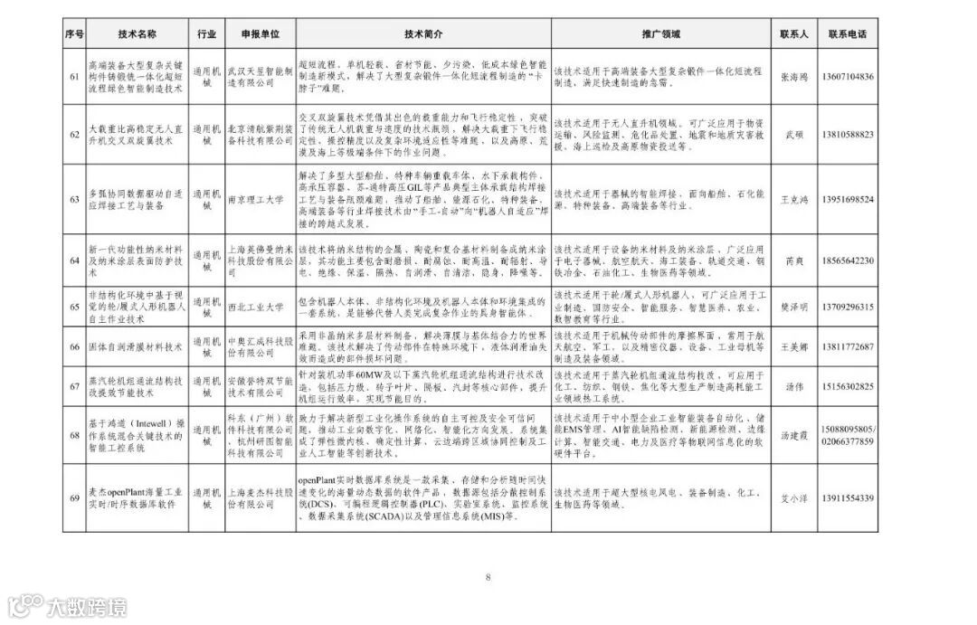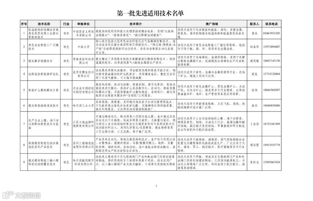 近日,工业和信息化部办公厅下发《关于印发第一批先进适用技术名单的通知》。通知称,根据《工业和信息化部办公厅关于开展先进适用技术(第一批)遴选工作的通知》(工信厅科函〔2024〕398号),经自主申报、初审推荐、专家评审、公示等程序,形成了第一批先进适用技术名单,现予以公布。请各地工业和信息化主管部门、各有关单位高度重视先进适用技术推广工作,加强工作宣传和政策支持,依托行业协会、专业机构,通过对接活动等多种方式予以推广,促进产业高端化、智能化、绿色化转型升级,提升中小企业技术水平;加强跟踪评估,及时总结有效做法和提出改进措施,不断提升推广应用成效。有关成效及建议及时报部(科技司)。
