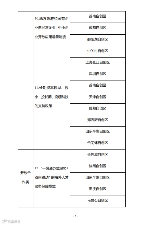 二、各自创区要充分发扬首创精神,强化对试点任务的落实,按照政策试点实施方案的总体目标、重点任务及进度安排,有序推进试点工作,力争突破一批创新体制机制瓶颈,形成一批可复制可推广的政策成果。