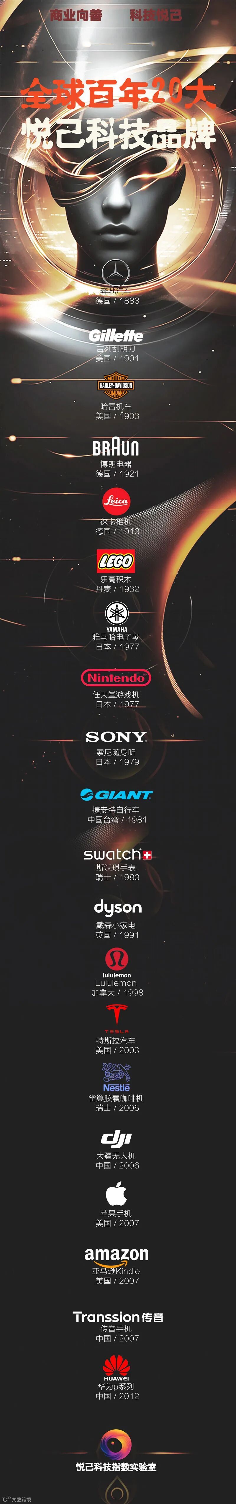 全球百年 20 大悦己科技品牌榜