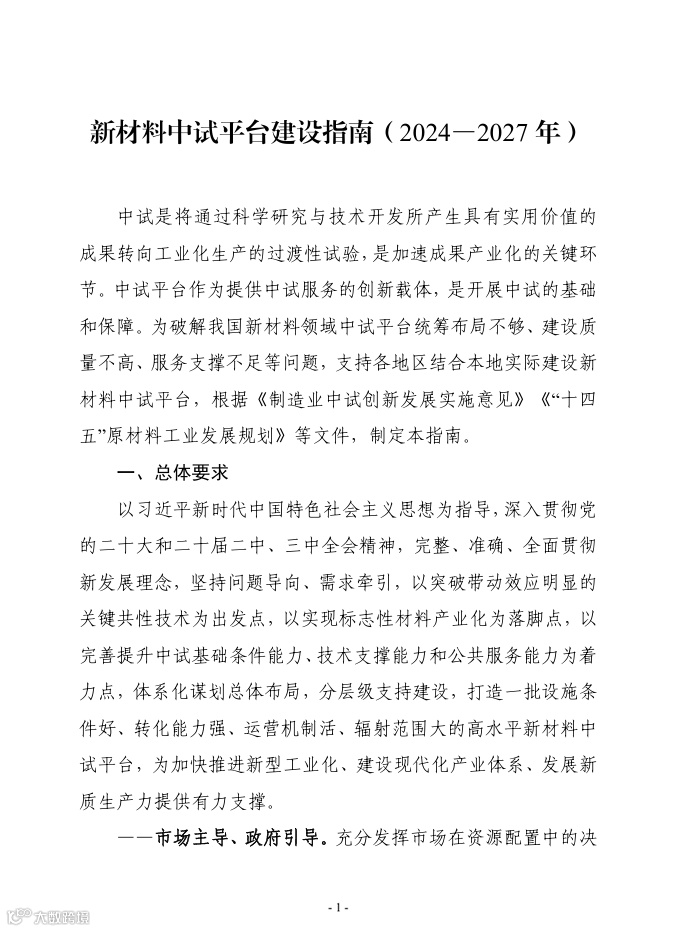 工业和信息化部 国家发展改革委关于印发《新材料中试平台建设指南(2024—2027年)》的通知