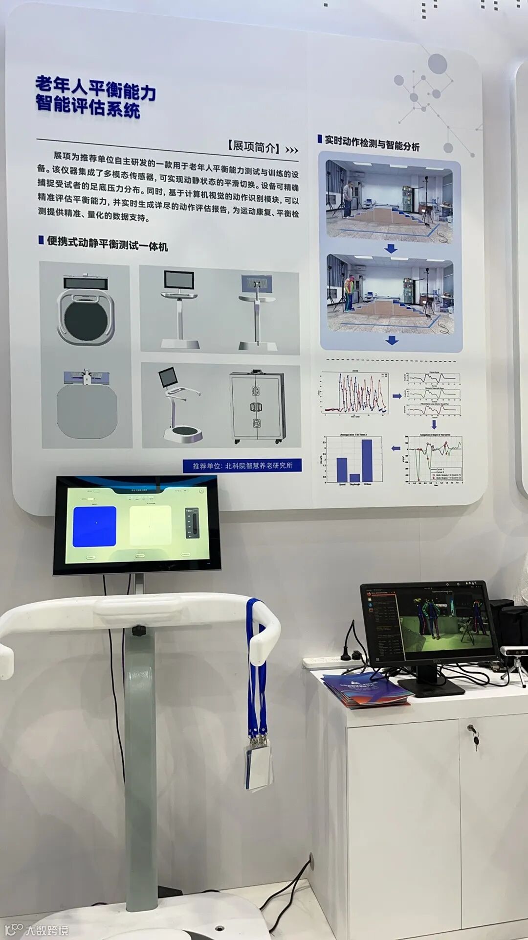 北京市科学技术研究院智慧养老研究所的老年人跌倒风险筛查设备引人注目。助理研究员吕子阳介绍,该设备的算法、软件均为自主研发。压力传感器和惯性传感器可以监测到老人身体的重心、运动能力、肌肉控制能力的相关数据,进行数据分析后可以立刻得到结果。此外为了提高老年人的运动能力,研究所和北京师范大学体育与运动学院合作开发了有针对性的系列锻炼课程。