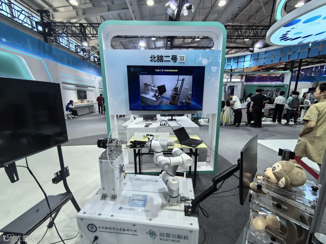 此次展会上我们看到了之前在2024中关村论坛上首发的“北脑二号” 智能脑机接口系统。该系统由北京脑科学与类脑研究所(“北京脑所”)与北京芯智达神经技术有限公司合作研发,在全球首次实现猕猴通过意念控制对二维运动目标的脑控拦截。