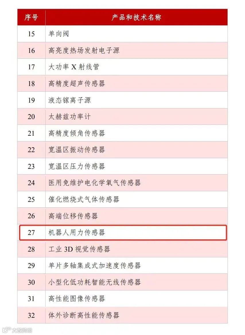 在清单基础零部件和元器件部分,共有37项重点项目被收录,高精度压力传感元件和机器人用力传感器便是其中重点,与触觉传感器联系密切,在机器人、医疗、精密加工等领域都有广泛应用。