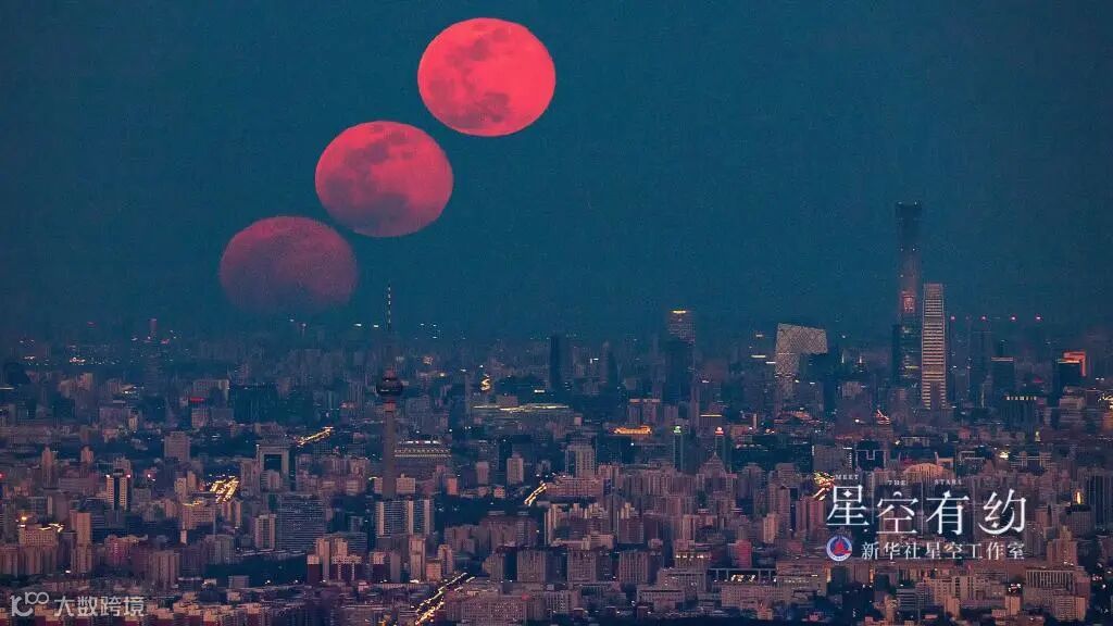 这是重庆市天文爱好者戴建峰2019年3月21日在北京拍摄的“超级月亮”串像(多张叠加)。