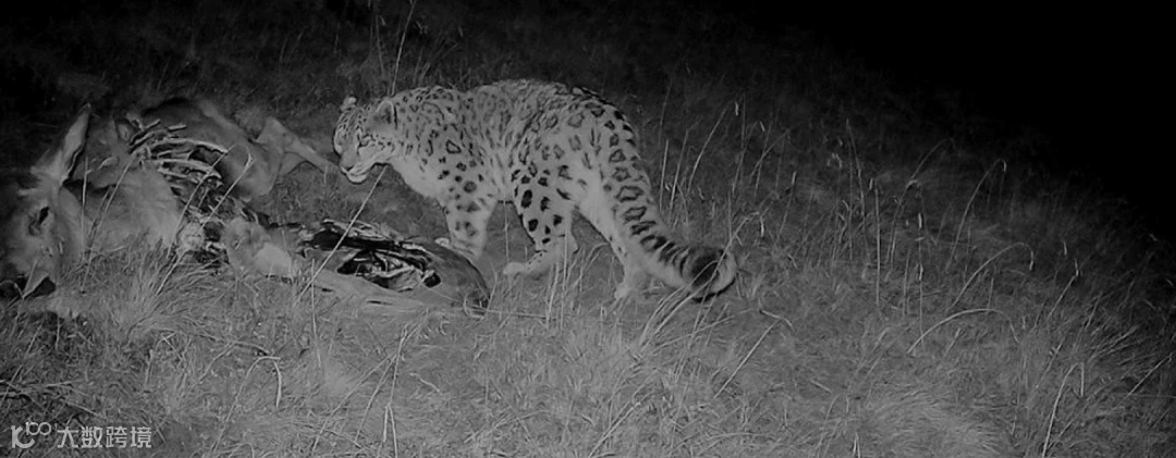 青海省林草局27日公布消息,近日,青海省海南藏族自治州同德石藏丹霞国家地质公园内,红外相机首次拍摄到雪豹食鹿的场景,这在同德县尚属首次。(来源:科技日报)