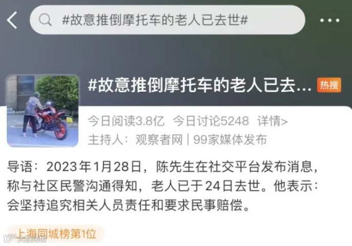 前阵子,一起“老太推倒摩托车”的案件引起了社会各界的广泛关注。受害人陈先生停放在小区的摩托车被一老人经过时推倒,在争取赔修权益的时候,该老人去世,遂产生了支付纠纷。陈先生依法维权,却遭到了网民的无端网暴。