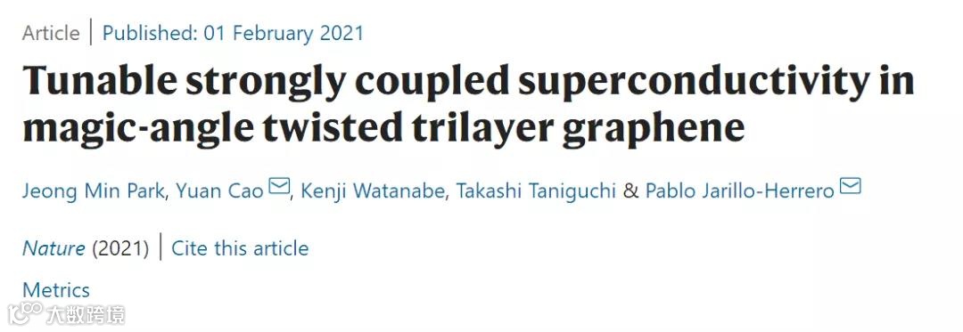 2021年2月1日,曹原等研究者在魔角扭曲三层石墨烯发现了moiré超导体,且该体系在电子结构和超导性能方面的可调性,优于魔角扭曲双层石墨烯。相关论文以题为“Tunable strongly coupled superconductivity in magic-angle twistedtrilayer graphene”发表在Nature上,这是曹原第5次以一作+通讯作者的身份在Nature上发文。