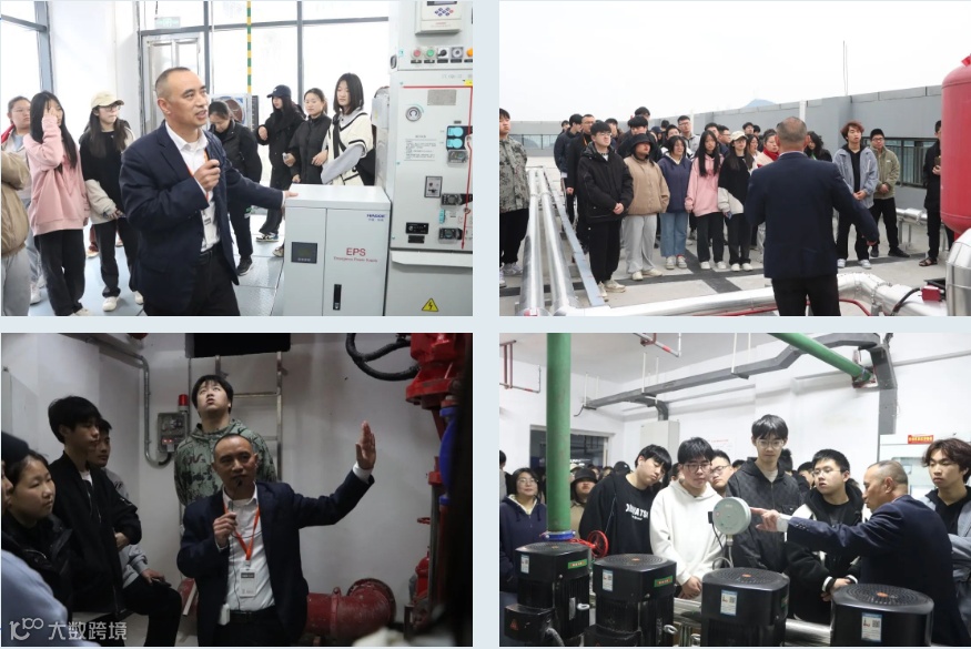 紧接着,由张红军老师带领大家参观项目现场,参观了配电室、消防水箱、水泵房等设施设备,途中就消防稳压系统、水泵房运行原理等内容进行讲解与互动。