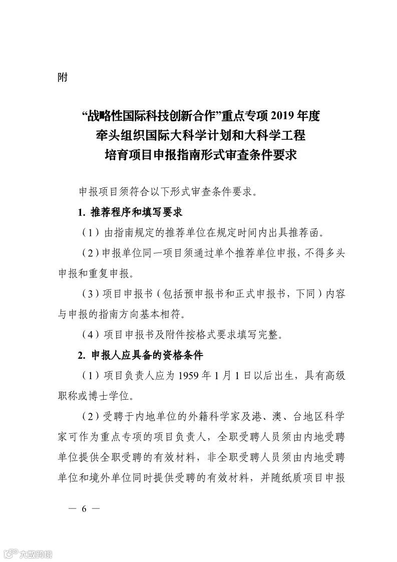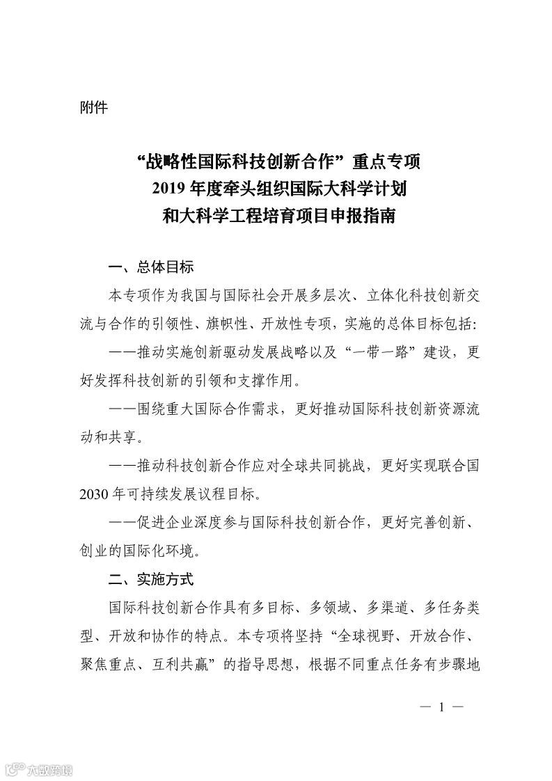 附件:“战略性国际科技创新合作”重点专项2019年度牵头组织国际大科学计划和大科学工程培育项目申报指南