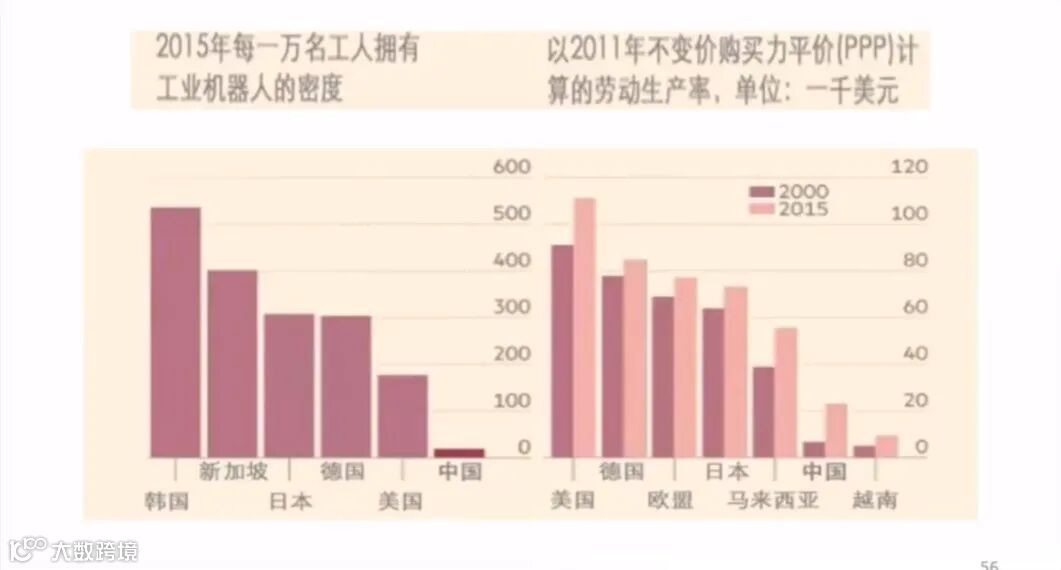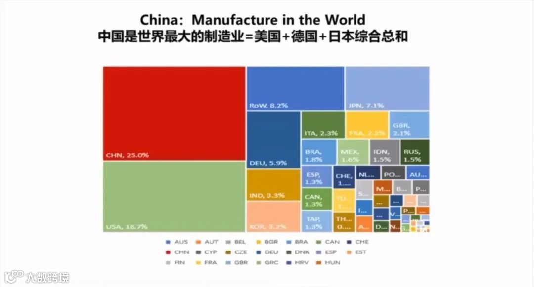 制造业,中国是世界上最大的制造业大国,中国的制造业等于德国、美国和日本的总和,但是中国制造业的机器人比例是很低的。