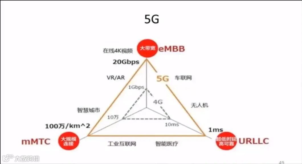 5G有几个特殊点:一是把带宽,二是连接。一个平方公里从10万到100万,可以输送目前所有,几乎是一个毫微秒的低延时。这就使得无人机、智能医疗、工业互联网、车联网都成为可能。