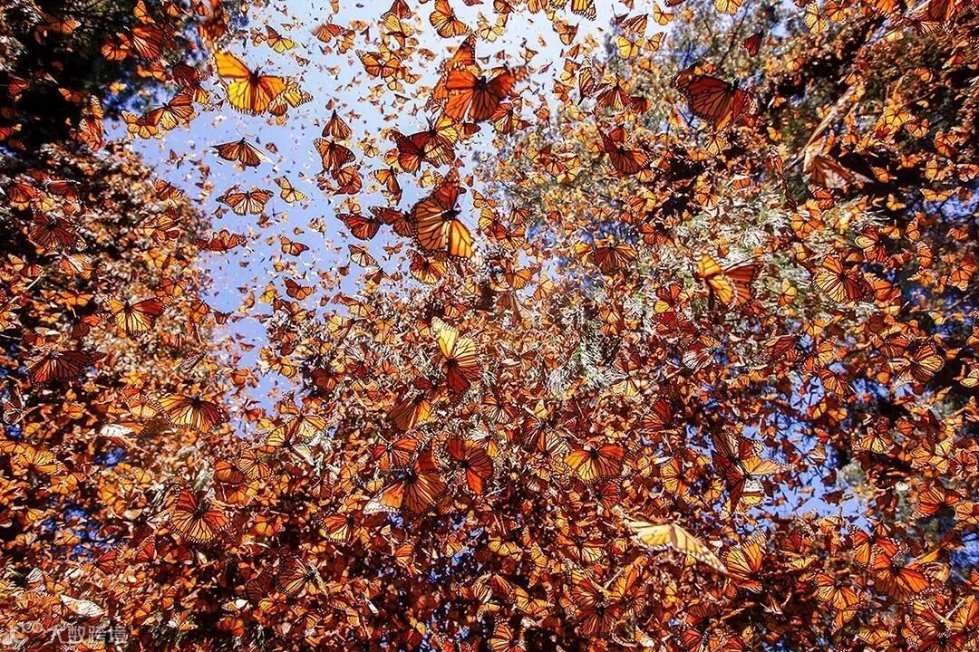 冬季,帝王蝶在墨西哥米却肯州云集。