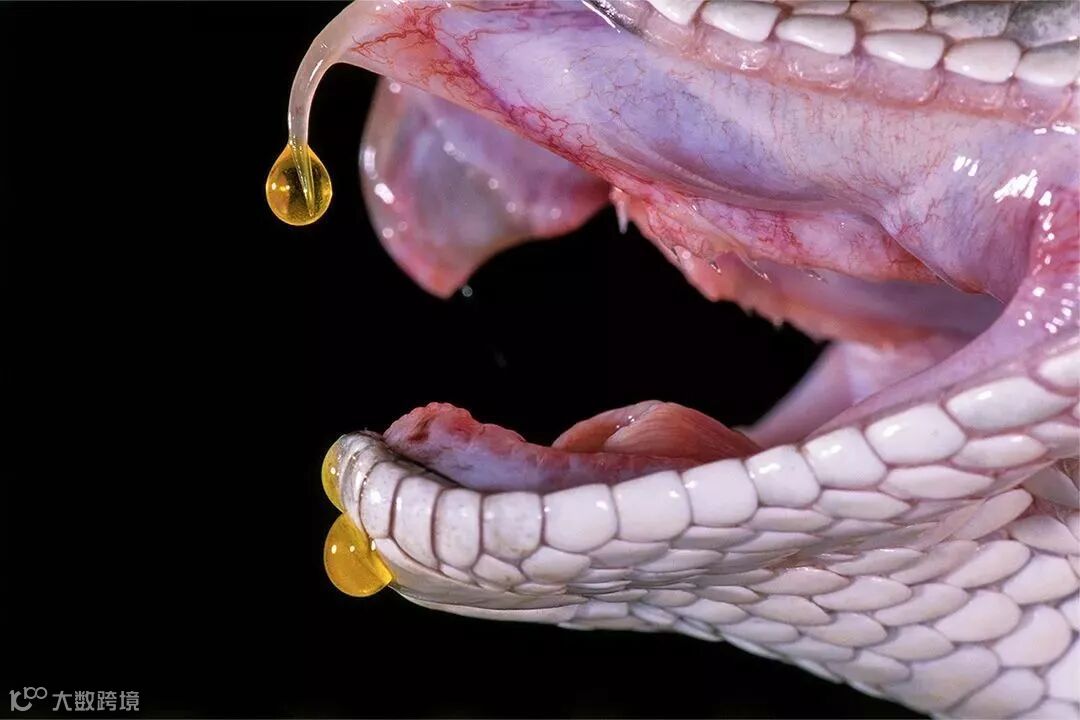 毒液从草原响尾蛇的尖牙上滴下。草原响尾蛇是产生此类毒素的2万余种动物之一。