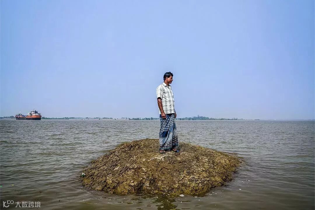 46岁的Pran Gopal Mondal站在“32号圩田”上。这是孟加拉国Gunari一座正在缩减的人工岛。