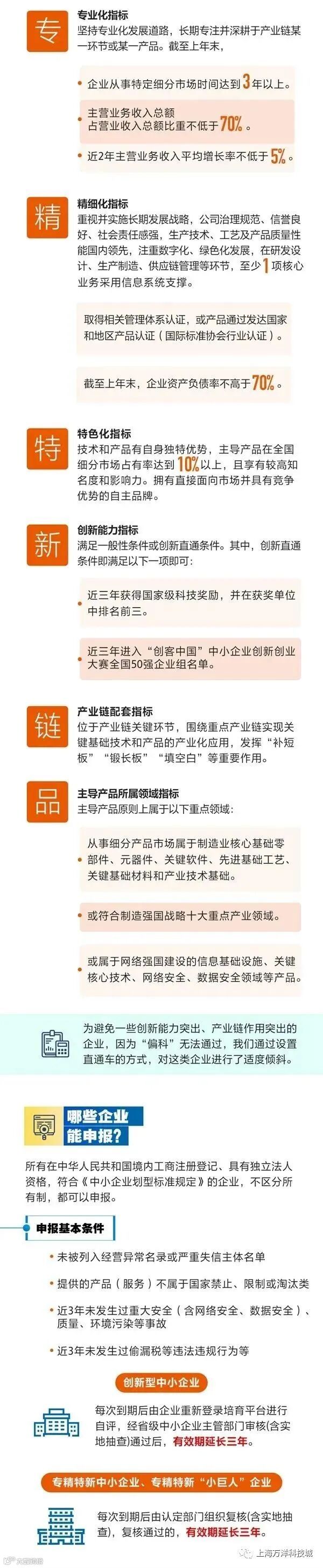 对复核或再次认定为市“专精特新”的企业,给予2万元奖励;对认定为奉贤区“专精特新小巨人”的企业,给予一次性20万元的奖励。